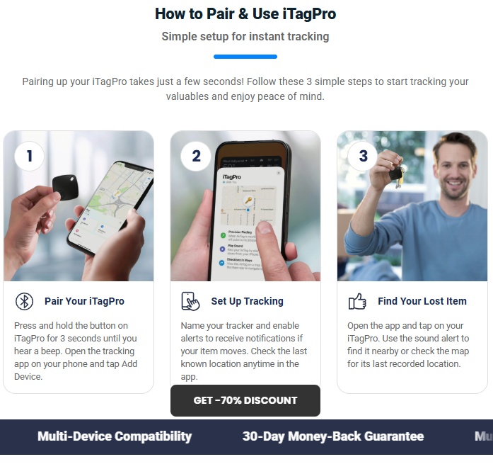 The iTagPro Tracker is available directly from the official site, often with special discounts and fast shipping options. It comes with a 30-day money-back guarantee to ensure your satisfaction.